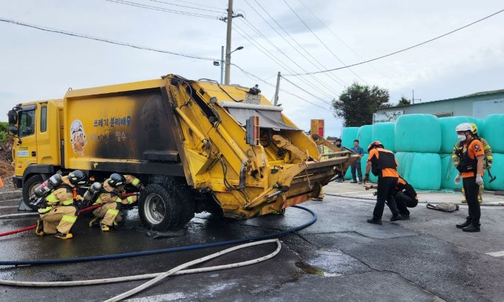 30일 제주동부소방서 등에 따르면 지난 29일 오전 9시30분쯤 제주시 조천읍 신촌리의 도로에서 쓰레기 수거 차량에 불이 났다는 신고가 접수됐다.