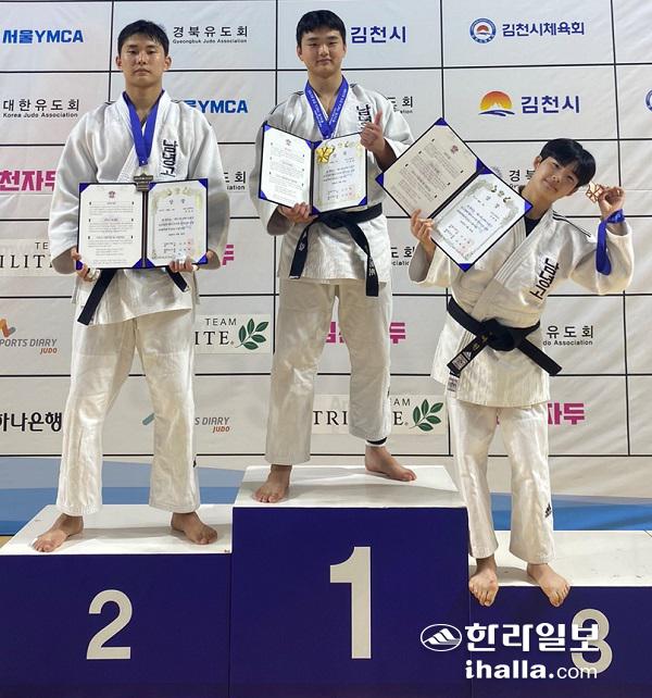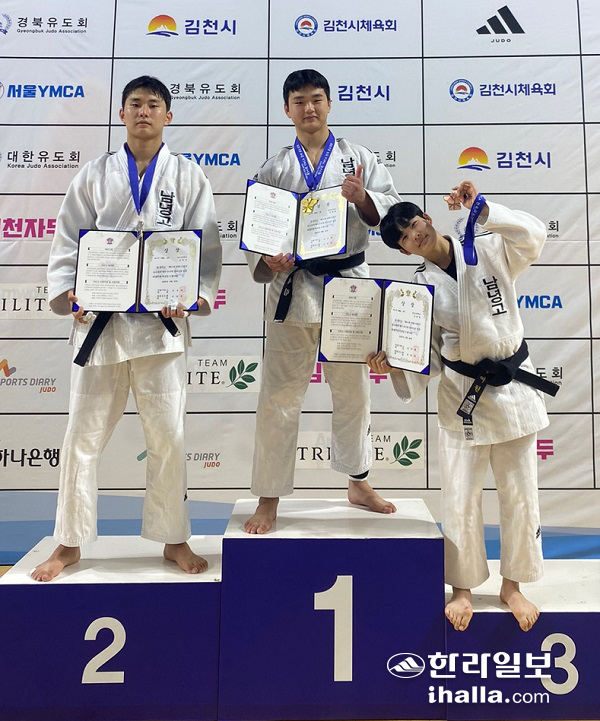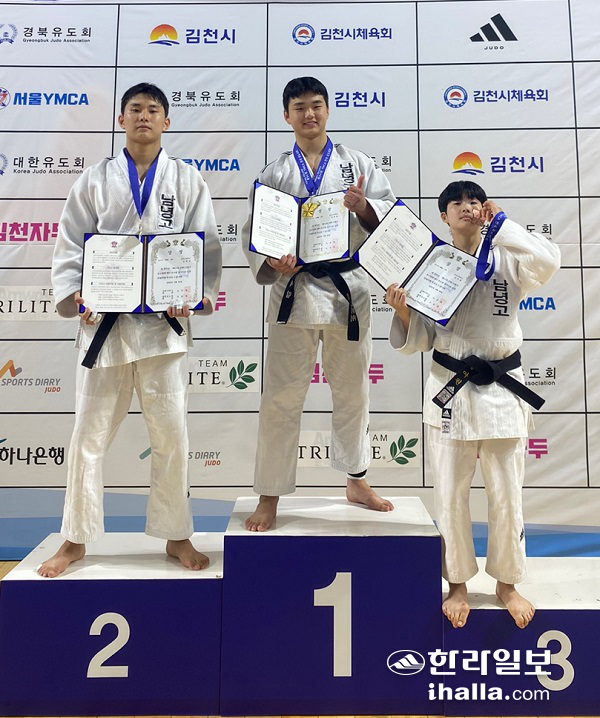 남녕고 유도 김세림 金, 김진우 銀, 강여원 銅