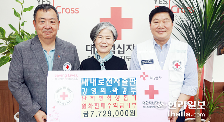내내로전자출판(대표 강영의·곽경부)은 지난 4일 제주적십자사 회장실에서 대한적십자사제주특별자치도지사(회장 정태근)에 난치병학생 치료비 지원 성금 772만원을 전달했다.