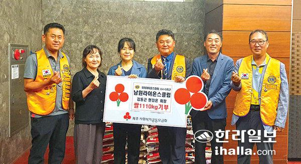 국제라이온스협회 354-G(제주)지구 남원라이온스클럽 김동근 회장과 현길은 부인회장은 지난 4일 서귀포시 남원읍(읍장 현은정)을 방문해 지역 내 어려운 이웃에게 전해달라며 쌀 1110㎏을 기탁했다.