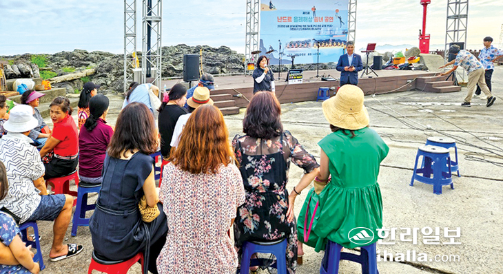 서귀포시 안덕면 대평리마을회는 지난 1일 난드르 대평포구에서 주민 등 200여명이 참가한 가운데 '제15회 난드르 올레해상 좀녀 공연'을 개최했다.