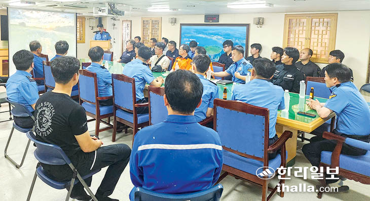 이날 제주항 7부두에서 제주해경청과 제주해경서 주관으로 진행된 합동 훈련에는 서귀포해경서, 제주소방서·제주도청·한국해양교통안전공단·한일고속 등 4개 여객선사 및 민간해양구조대원 등 50여명이 참여했다.