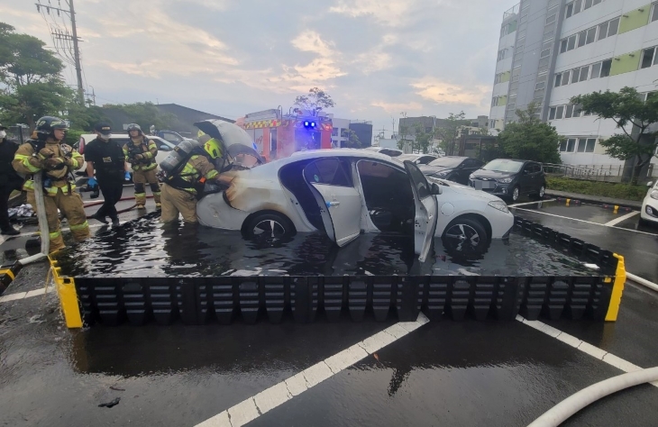 9일 제주소방서 등에 따르면 이날 오전 4시45분쯤 제주시 봉개동의 한 아파트 주차장에서 전기차 화재 신고가 접수됐다.