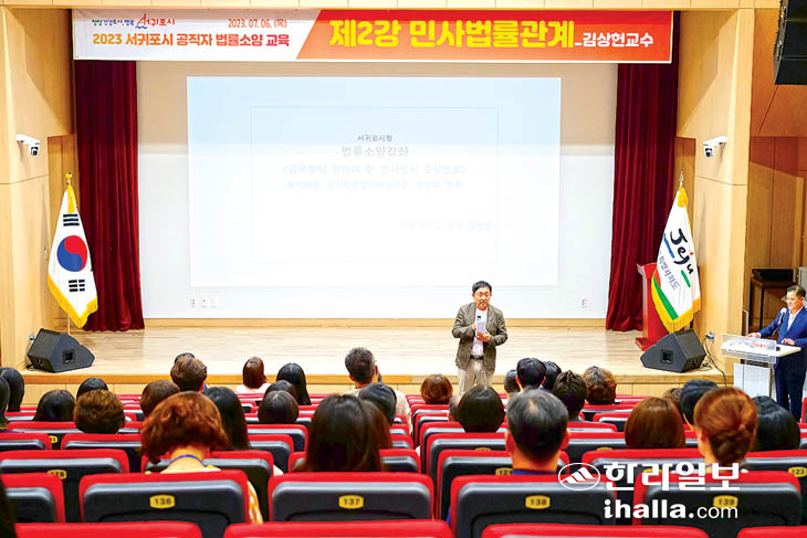 서귀포시는 지난 6일 제주대학교 법학전문대학원의 김상헌 교수를 초청해 공무원 법률소양 교육을 실시했다.