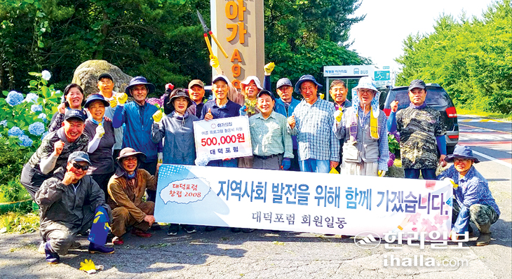 조천읍 함덕리 봉사단체인 대덕포럼(회장 강순언)은 지난 2일 회원 20명이 참여한 가운데 아가의집 버스정류소 청소와 함께 입구 가로수 가지치기 환경정화 활동을 벌였다. 이날 가지치기 작업은 오영철 직전회장의 포클레인 지원으로 이뤄졌다.
