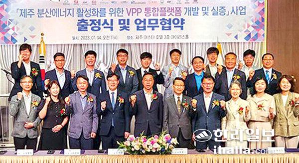 제주에너지공사(사장 김호민)는 지난 4일 한국전력공사 전력연구원, 전력거래소, 한전KDN, 도내 에너지기업 등 14개 기관과 '제주 분산에너지 활성화를 위한 VPP 통합플랫폼 개발 및 실증' 사업 출정식 개최 및 업무협약을 체결했다.