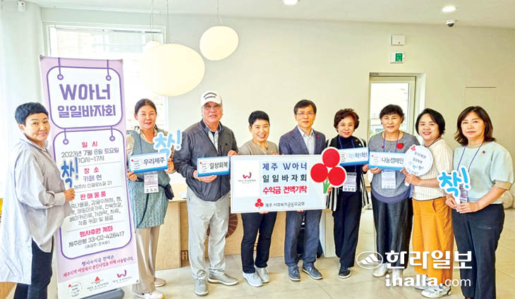 제주사회복지공동모금회(회장 강지언) 여성 고액기부자 모임 '제주 W아너 소사이어티(W아너리더 김순희·(주)오현개발 대표)'는 지난 8일 제주시 이도2동 소재의 카페 현에서 일일바자회를 진행하고 수익금 전액인 502만원을 기부했다. 이번 성금은 W아너 소사이어티 회원들이 손수 마련한 수제청과 빵, 잼 등 먹을거리와 음료를 판매해 마련했다.