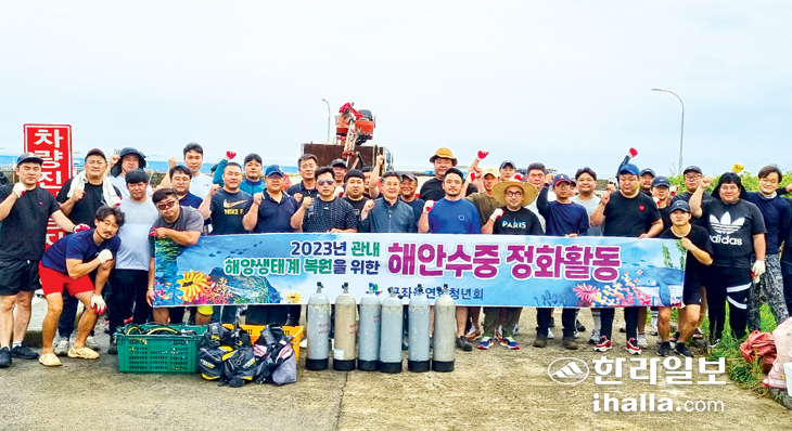 제주시 구좌읍연합청년회(회장 한성홍)는 지난 9일 회원 50여 명이 참석해 평대리 서동포구와 주변 해안가 일대에서 청정한 해양 환경 조성을 위한 수중 정화 활동을 실시했다. 이날 참가자들은 스킨스쿠버 장비를 활용해 바닷속에 방치된 타이어, 어구, 밧줄 등 해양 폐기물을 집중 수거했다.