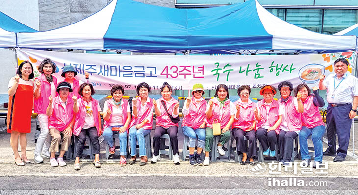 신제주새마을금고(이사장 양인천)는 창립 43주년을 맞아 최근 국수 300인분을 준비해 금고 방문객에게 대접하는 '국수 나눔 행사'를 진행했다.