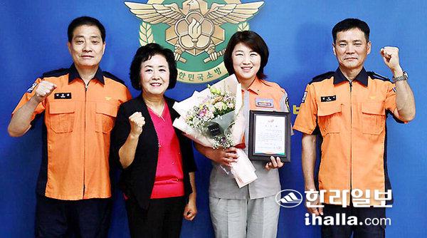 이날 표창을 받은 아라여성의용소방대 고인숙 대원은 지난 6월 환자 6명이 발생한 차량 단독 교통사고 현장에서 거동 가능한 환자를 안전한 곳으로 대피시키고, 현장통제 활동을 실시하는 등 초기대응으로 소방출동대의 신속한 현장파악과 인명구조 활동을 도왔다.