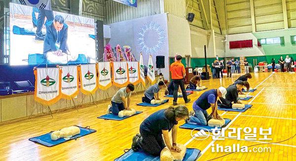 제주동부소방서(서장 김대홍)는 지난 14일 제주공천포전지훈련센터에서 개최된 2023년 한국농촌지도자 서귀포시연합회 회원대회에서 심폐소생술 교육을 실시했다.