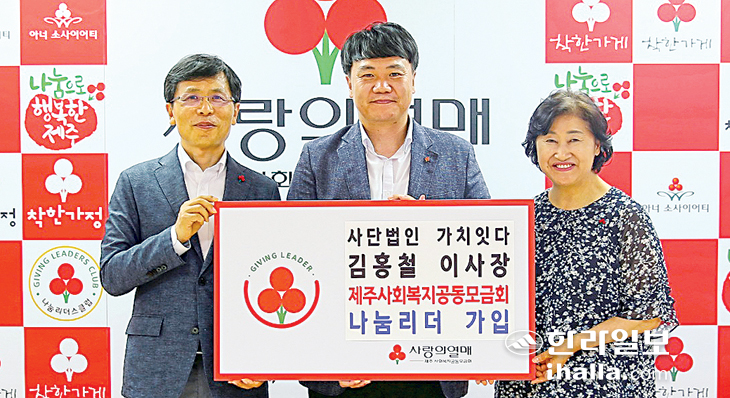 사단법인 가치잇다 김홍철 이사장은 지난 13일 제주사회복지공동모금회(회장 강지언)를 방문해 성금 100만원을 기탁하고 '제주 나눔리더' 141호로 가입했다.