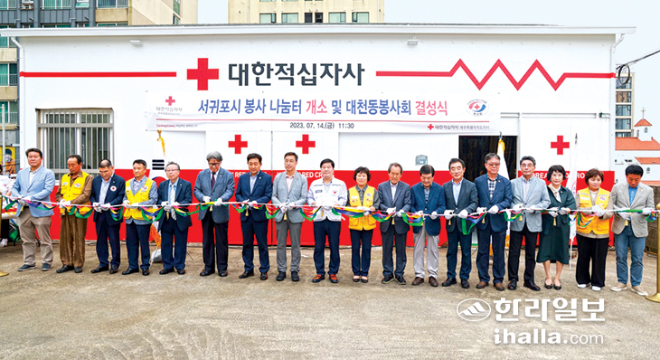 대한적십자사제주특별자치도지사(회장 정태근)는 지난 14일 위성곤 국회의원, 이종우 서귀포시장 외 내외빈과 봉사원 150여명이 참석한 가운데 대한적십자사 서귀포시 봉사나눔터 개소식 및 대천동봉사회 결성식을 진행했다. 서귀포시 봉사나눔터는 2016년 서귀포 동문로에 있던 시설이 폐소된 이후 7년만에 재개소 됐으며 이는 독지가가 건물 무상임대, 여성봉사특별자문위원회, 서귀포시 국회의원과 도의원, 행정기관 및 제주도민들의 협조와 지원으로 가능했다.