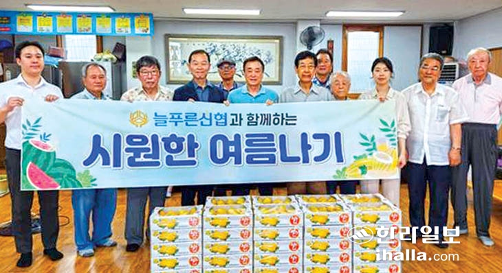 늘푸른신협(이사장 김정학)은 '신협과 함께하는 시원한 여름나기' 행사로 지난 11일 공설마을경로당을 방문해 150㎏ 상당의 참외와 부채를 전달했다.