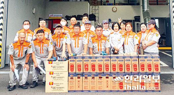 서귀포소방서 중문119센터(센터장 현승남)는 지난 15일 소방공무원, 의용소방대원 등 30여명이 참여해 서귀포시 하원동 화재없는 안전마을 100여가구에 기초소방시설을 보급했다.