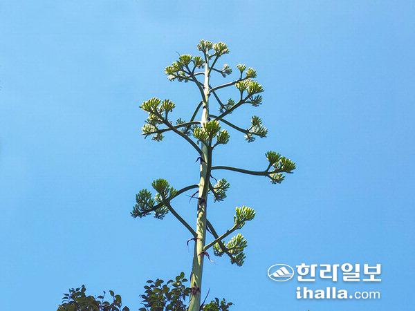'일생에 단 한번 꽃을 피운다'는 용설란이 제주에서 꽃망울을 터뜨렸다.