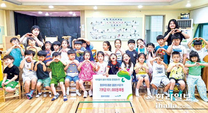 제주시 이도이동에 위치한 동원유치원(원장 현은선) 귤림반은 지난 17일 초록우산 어린이재단 제주지역본부(본부장 변정근)에 귤림랜드 행사를 통해 마련된 수익금 10만1000원을 전달했다. 귤림랜드 행사는 '귤림랜드로 오세요'라는 기부금을 조성한 행사로, 마련된 수익금은 도내 어려운 또래 친구들을 위해 사용될 예정이다.