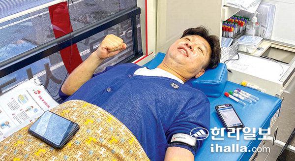 롯데면세점 제주점(점장 이성철)은 18일 대한적십자사제주 혈액원 파견 차량에서 '사랑의 생명 나눔 헌혈 캠페인'을 진행, 임직원 30여명이 자발적으로 헌혈에 동참했다고 이날 밝혔다.