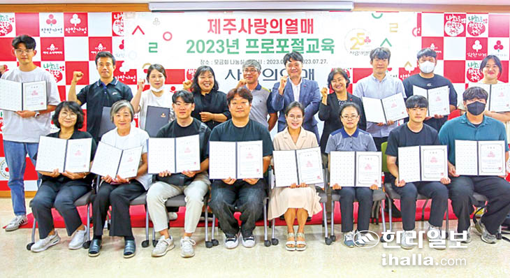 제주사회복지공동모금회(회장 강지언)는 지난 14일 모금회 회의실에서 '2023년 제주사랑의열매 프로포절 교육' 수료식을 진행했다.