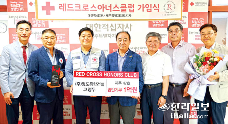 (주)영도종합건설(회장 고영두)은 18일 제주적십자사 회장실에서 대한적십자사제주특별자치도지사(회장 정태근)에서 실시하는 1억원 이상 고액기부자 모임인 레드크로스아너스클럽(Red Cross Honors Club, 이하 'RCHC')에 제주 47호로 가입했다.
