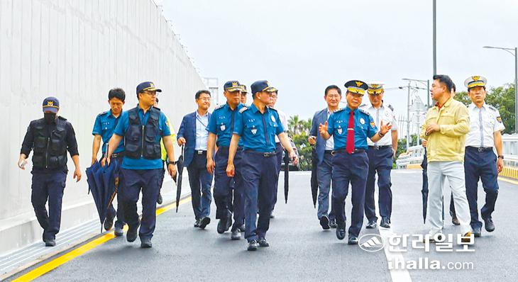 이상률 제주경찰청장은 18일 제주도 내에서 최초로 개통 예정인 제주공항 지하차도를 찾아 현장 점검을 실시하고 위험요인 발견 시 도로 통제 등 선제적 경찰조치 및 지자체와 정보 공유 등을 할 것을 당부했다.
