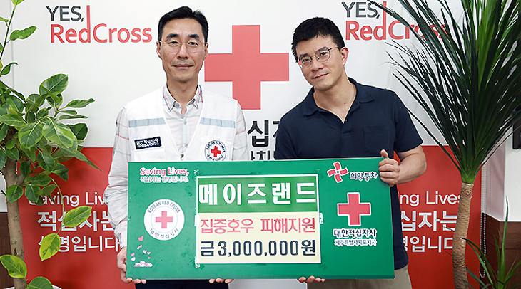 (주)메이즈랜드(대표이사 이동한)는 지난 19일 대한적십자사제주특별자치도지사(회장 정태근)에 집중호우 피해지원 긴급구호 성금 300만원을 전달했다.
