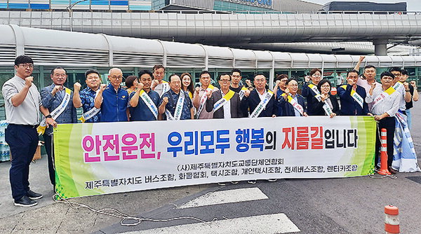 사단법인 제주특별자치도 교통단체연합회(회장 강동훈)는 지난 19일 여름 휴가철은 맞이해 제주국제공항 렌터카 하우스 일원에서 교통안전 캠페인을 실시했다.