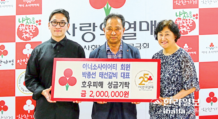 박종선 태선갈비 본점 대표와 아들 박태준 태선갈비 일도점 대표는 지난 24일 제주사회복지공동모금회(회장 강지언)를 방문해 호우피해 지원성금 200만원을 기탁했다.