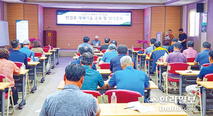 한경농협(조합장 김군진)은 지난 21일 농업인교육장에서 만감류 재배농가 70여명을 대상으로 '고품질 만감류 생산을 위한 재배 관리 기술교육'을 실시했다. 교육은 서부농업기술센터 양정원 팀장이 강사로 나서 하절기 만감류 재배기술과 관리방법에 대해 강의해 재배농가들의 호응을 얻었다.