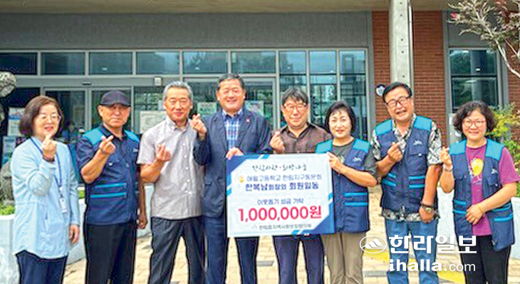 애월고등학교 한림지구동문회(회장 한복남) 회원들은 지난 24일 제주시 한림읍사무소(읍장 강봉찬)를 방문해 관내 어려운 취약계층 가구에 써달라며 성금 100만원을 기탁했다.