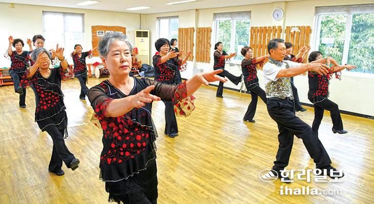 제주시 서부보건소는 지난 25일 애월읍 유수암리 다목적실에서 건강 증진 발표회를 개최했다. 이번 발표회에서는 농촌지역 주민의 우울과 치매 예방, 활기한 건강 생활 실천 등 보건사업 일환으로 마련된 라인댄스, 트롯장구 프로그램에 참여했던 유수암리와 고성2리 주민들의 기량을 선보였다.