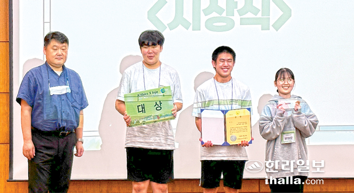 제주도교육청이 지난 24일부터 27일까지 도내 고등학생 1~2학년 69명(9개교 23팀)을 대상으로 실시한 '2023 소프트웨어 인재 양성 해커톤(그린 웨이브 해커톤)'에서 '인재호소인(제주사대부고)'팀이 대상을 차지했다. 대상을 받은 '인재호소인' 팀은 제주바다에 버려지는 무분별한 쓰레기 문제를 해결하기 위한 플라스틱 수거함 설치와 함께 인공지능을 이용해 플라스틱을 감지하고 포인트를 적립할 수 있는 앱을 개발했다.