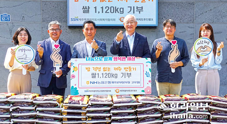 NH농협은행 제주본부(본부장 고우일)는 지난 27일 제주자치도사회복지협의회(회장 고승화)를 찾아 '밥 걱정없는 제주만들기 릴레이 기부 캠페인'에 동참하기 위해 쌀 1120㎏을 전달했다. 농협은행 제주본부는 2022년에 이어 올해에도 캠페인에 참여하고 있다.