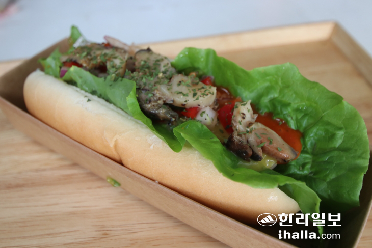 | 자숙소라를 넣어 만든 핫도그. 사진=제주어촌특화지원센터 |