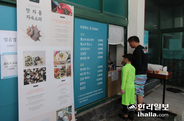 제주 뿔소라를 알리는 다양한 음식도 준비됐다. 먹거리 장터에선 자숙소라를 넣은 비빔밥이, 홍보 부스에선 자숙소라 흑돼지 꼬치구이가 선보였다. 해수욕장 내에 유휴공간을 활용한 계절음식점 '금능 맛차롱 상점'에선 뿔소라 샌드위치, 핫도그 등의 이색 메뉴가 발길을 끌었다. 제주어촌특화지원센터의 '수산식품고도화사업' 지원을 받아 지난해부터 판매하는 음식이다. 맛차롱 조합원들이 직접 레시피를 배우고 익혀 만들고 있다.