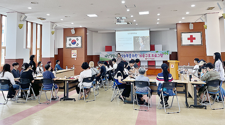 대한적십자사제주특별자치도지사(회장 정태근)는 지난달 29일 제주시 일대에서 재난을 경험한 일반인 31명을 대상으로 마음구호 프로그램을 진행했다.