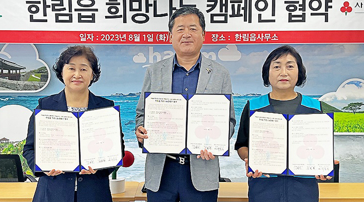 제주시 한림읍(읍장 강봉찬)과 한림읍지역사회보장협의체(위원장 김봉선), 제주사회복지공동모금회(회장 강지언)는 1일 한림읍사무소에서 지역사회 복지사각지대 해소를 위한 '희망나눔캠페인' 업무 협약을 체결했다.
