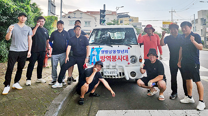 영평상동청년회 영평초 방역 지원
