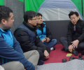 지난 2월 농성중인 북부광역환경관리센터 노조원들과 면담하는 오영훈 제주지사.