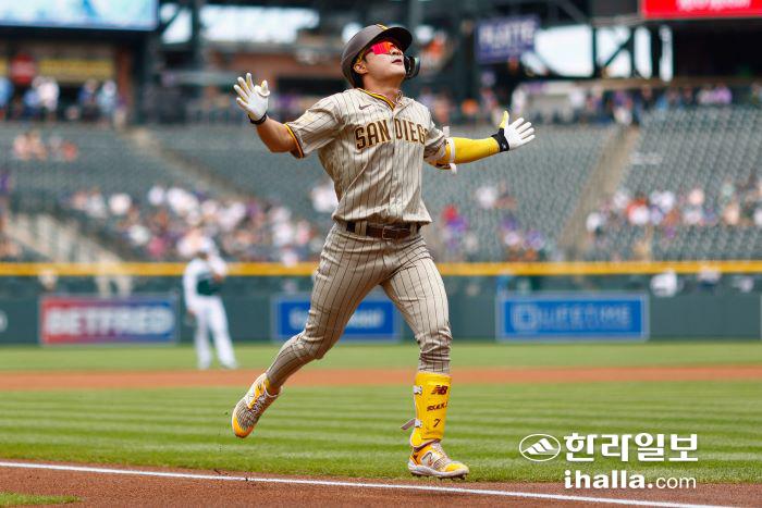 김하성은 3일(한국시간) 미국 콜로라도주 덴버 쿠어스 필드에서 열린 2023 미국프로야구 메이저리그(MLB) 콜로라도 로키스와 방문 경기에 1번 타자 3루수로 선발 출전해 3타수 2안타 2볼넷 1홈런 1타점 3득점으로 펄펄 날았다.