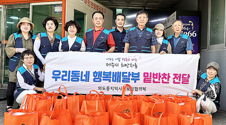 제주시 외도동지역사회보장협의체(공동위원장 안창준·양경수)는 지난달 31일 경제적으로 어려운 독거노인, 장애인 가구 등 25가구를 방문해 밑반찬을 전달했다. 이 사업은 지난 3월부터 매달 한 차례 진행하고 있다.