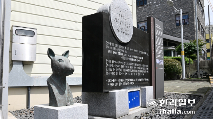 | 제주시가 이도1동 공영주차장 입구에 세운 '천추성 북두칠성 제일도'. 이상국기자 |