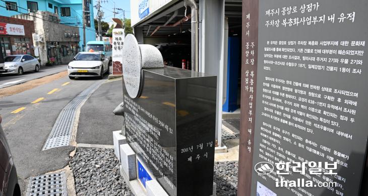 첫 번째 칠성대 추정 유적이 발굴된 제주시 이도1동 공영주차장. 유적의 존재가 알려지기 전인 2011년에 제주시에서 세운 '천추성 북두칠성 제일도'란 이름의 칠성대 표석이 보인다. 이상국기자