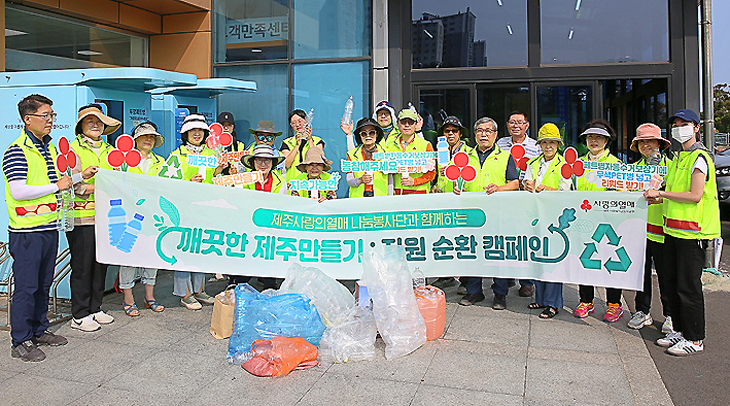 이번 캠페인은 해양 환경정화와 함께 지속가능한 자원순환 활동 참여를 독려하고자 마련됐으며 봉사단은 이날 이호테우해변 인근에 태풍이 지나가면서 발생한 해양쓰레기를 수거하고 재활용 가능한 쓰레기를 분류해 제주특별자치도개발공사에서 운영중인 '무색 PET병 자동수거보상기'에 반납했다.