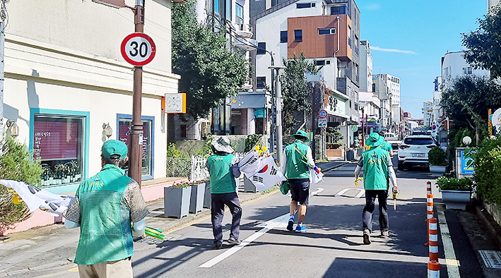 서귀포시 새마을지도자천지동협의회(회장 김원권)는 지난 14일 제78주년 광복절을 맞아 회원 10여명이 참여한 가운데 광복절의 의미와 나라사랑 정신을 드높이기 위해 아랑조을거리 1·2번가를 중심으로 태극기 달기 캠페인을 전개했다.