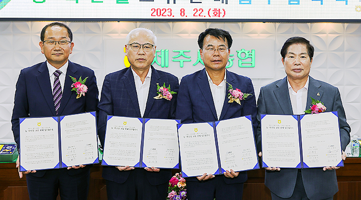 제주시는 22일 제주시농협 본점 회의실에서 제주시와 고흥군의 지역 농·특산물에 대한 상호 교류 판매 업무 협약을 체결했다.