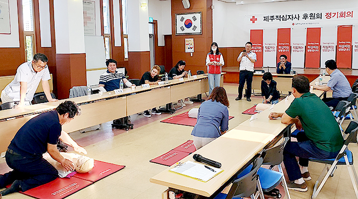 대한적십자사제주특별자치도지사 후원회(회장 신영민)는 지난 21일 적십자사 나눔홀에서 회원 15명이 참석한 가운데 심폐소생술 교육을 실시했다.