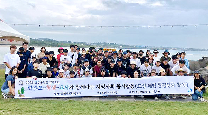 표선중학교(교장 현연숙)는 지난 19일 표선해비치해변에서 '학부모와 자녀·교사가 함께하는 지역사회 봉사 활동'을 실시했다. 이날 80여 명의 참가자들은 표선해비치해변의 환경을 정화하고 분리 수거에 나서는 등 환경 보호 활동을 펼쳤다.