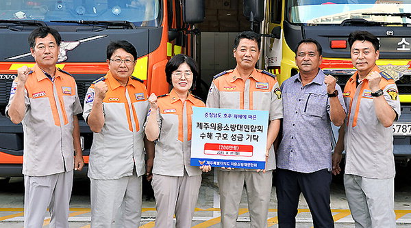 제주특별자치도 의용소방대연합회(남성회장 김봉민·여성회장 김명자)가 최근 집중호우로 큰 피해를 입은 충청남도 수해 복구를 돕기 위해 성금 200만 원을 기부하며 온정을 나눴다.