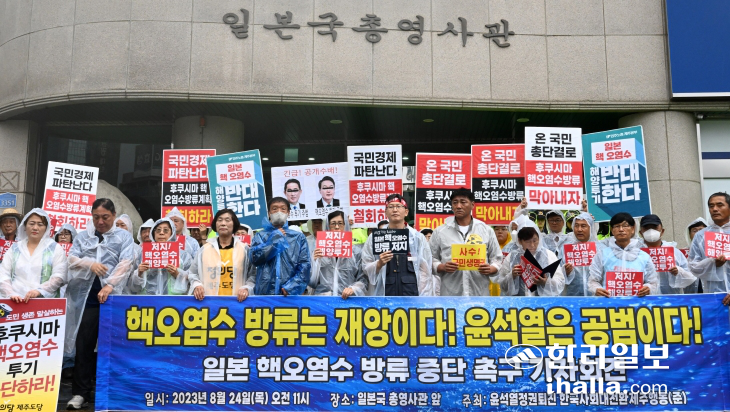제주행동은 "바다는 제주민중의 삶의 터전으로 제주의 해양생태계가 핵오염수로 인해 황폐화되고 어업과 관광 등 제주 경제에 끼칠 피해도 적지 않다"며 "일본 정부는 지금이라도 해상 방류 행위를 중단해야 하며 윤석열 정권은 강력한 반대 의사를 표명하라"고 했다.